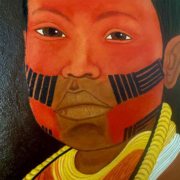 Obraz namalovaný našim brazilský kamarádem José, který pro Sarava, vyrábí výrobky z produktů pralesa. Celý život žije v indiánských komunitách, v propojení s medicínskou a spirituální cestou indiánů. Josého výrobky vznikajíce ve spojení se sílou pralesa a pohroužení se do meditativního stavu. Díky tomu, se každý jeho výrobek stává neopakovatelný originálem.